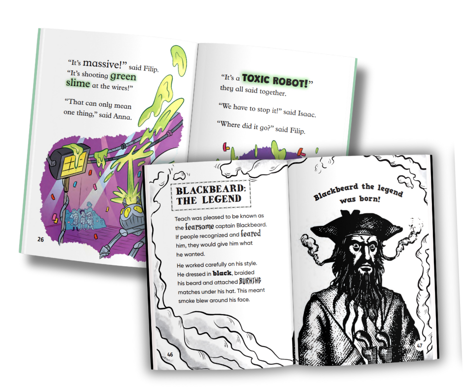 The books contain themes and storylines that resonate with older students to motivate them to read. The low word counts means readers can make rapid progress through the books and with chunky spines and around 60 pages in each book, they boost a student's confidence as they don't feel like they are reading books at a lower level than their classmates.